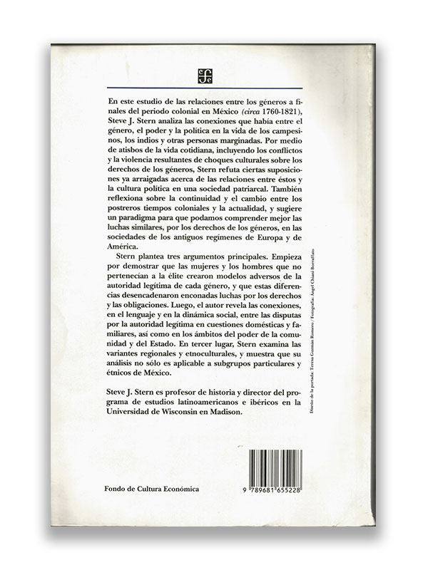 El autor analiza las conexiones que había entre el género, el poder y la política en la vida de los campesinos y otras personas marginadas. Plantea como argumentos empezar por demostrar que las mujeres y los hombres que no pertenecían a la élite crearon modelos adversos de la autoridad legítima de cada género y que estas diferencias desencadenaron enconadas luchas por los derechos y las obligaciones. Se sitúa en el período colonial en México 1760-1821.