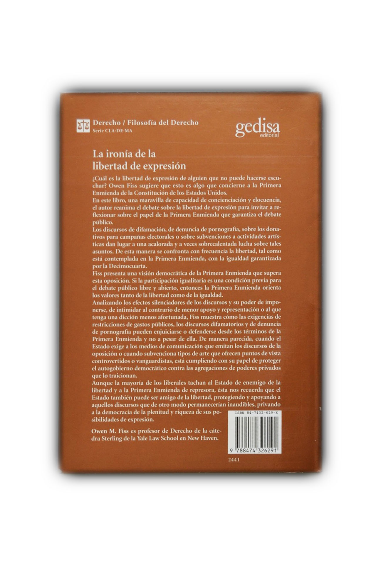 Esta crítica a los reparos ante el derecho fundamental de la libertad de expresión es una bien fundada advertencia sobre los peligros de la manipulación de los valores democráticos ¿Cuál es la libertad de expresión de alguien que no puede hacerse escuchar? No es mucha, bien pensado, y Owen Fiss sugiere que esto es algo que concierne a la Primera Enmienda de la Constitución de los Estados Unidos. En este libro, una maravilla de la capacidad de concienciación y elocuencia, el autor reanima el debate sobre la libertad de expresión para invitar a reflexionar sobre el papel de la Primera Enmienda que garantiza el debate público, es decir un debate, en palabras de William Brennan, ‘desinhibido, robusto y abierto’. Los discursos de difamación, de denuncia de pornografía, sobre los donativos para campañas electorales o sobre subvenciones a actividades artísticas dan lugar a una acalorada y a veces sobrecalentada lucha sobre tales asuntos. De esta manera se confronta con frecuencia la libertad, tal como está contemplada en la Primera Enmienda, con la igualdad garantizada por la Decimocuarta. Fiss presenta una visión democrática de la Primera Enmienda que supera esta oposición. Si la participación igual es una condición previa para el debate público libre y abierto, entonces la Primera Enmienda orienta los valores tanto de la libertad como de la igualdad. Analizando los efectos silenciadores de los discursos y su poder de imponerse, de intimidar al adversario de menor apoyo y representación o al que tenga una dicción menos afortunada, Fiss muestra cómo las exigencias de restricciones de gastos políticos o los discursos difamatorios pueden enjuiciarse o defenderse desde los términos de la Primera Enmienda y no a pesar de ella. De manera parecida, cuando el Estado exige a los medios de comunicación que emitan los discursos de la oposición o cuando subvenciona tipos de arte que ofrecen puntos de vista controvertidos o vanguardistas, está cumpliendo con su papel de proteger el autogobierno democrático contra las agregaciones de poderes privados que lo traicionen.