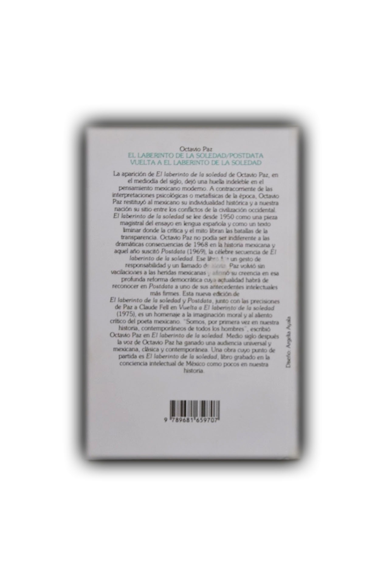 El Laberinto de la Soledad, Postdata y Vuelta a El laberinto de la soledad, es una Colección Popular del poeta mexicano Octavio Paz como un homenaje a su imaginación moral y al aliento crítico que poseía. "Somos, por primera vez en nuestra historia, contemporáneos de todos los hombres, escribió en El Laberinto de la Soledad.
